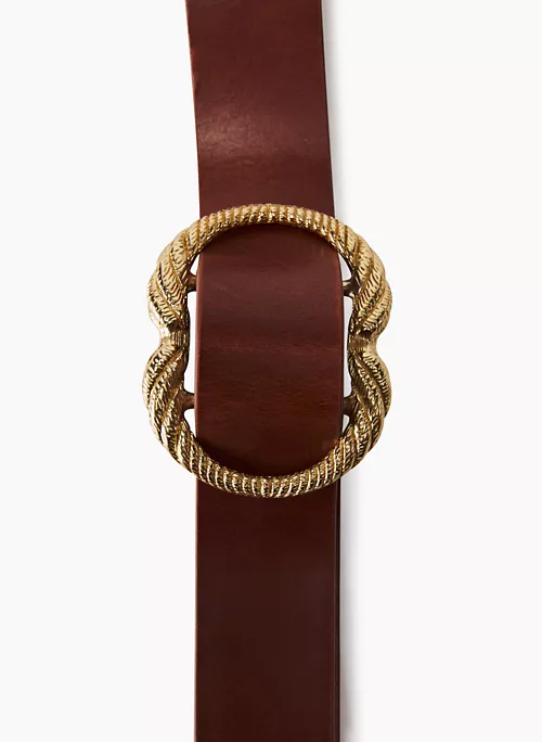 This is a wide belt with a solid brass buckle. It’s crafted from smooth 100% genuine leather.