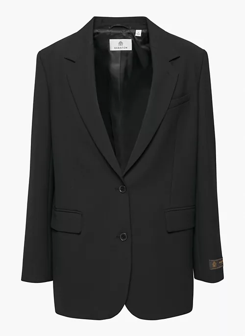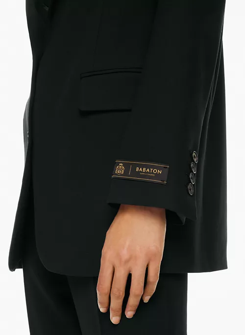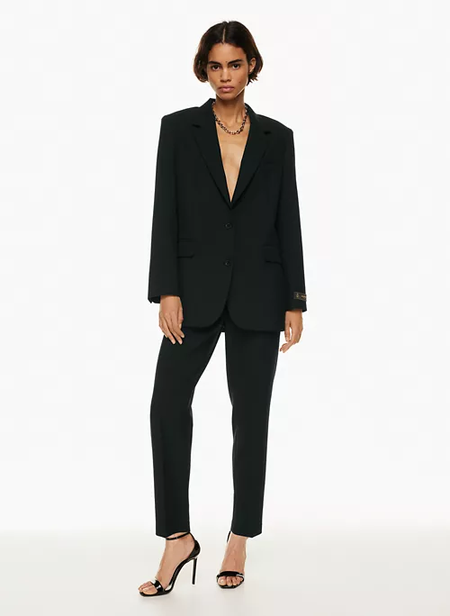 This is a fully lined, single-breasted blazer with a notch lapel, interior welt pocket and shoulder pads. Itās cut from (Re)ssential ā softly structured stretch fabric that holds its form while you move easy. Itās sourced from a premier Portuguese mill and made with recycled materials and LENZING⢠ECOVERO⢠Viscose ā responsibly sourced, wood-based fibres produced through a process that reduces impact on forests, biodiversity and water supply.Ā
