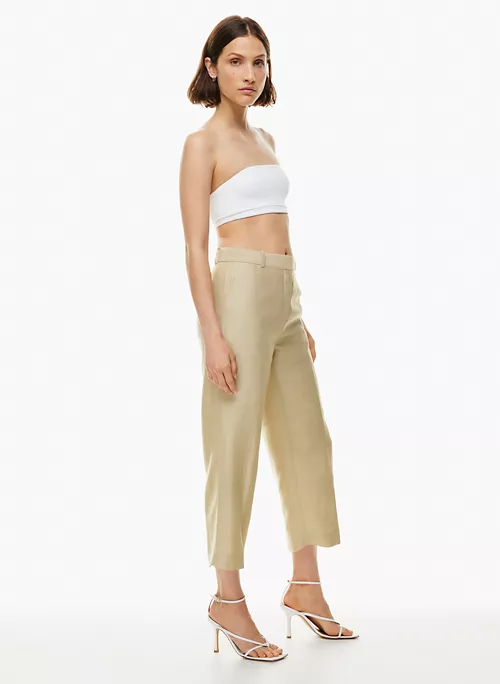 An essential for the modern professional, these are high-waisted pants with slash hand pockets, a darted back and a cropped straight leg. Theyāre cut from a luxe Italian fabric with a satin interior. This fabric is made with linen and wood-based fibres from responsibly managed forests.