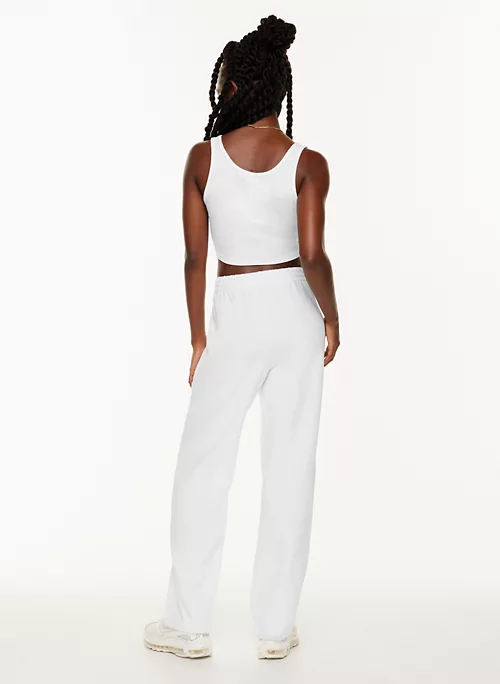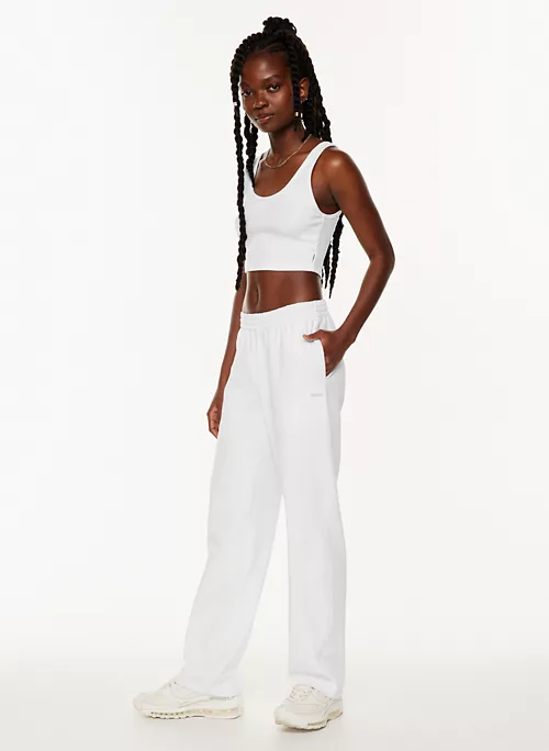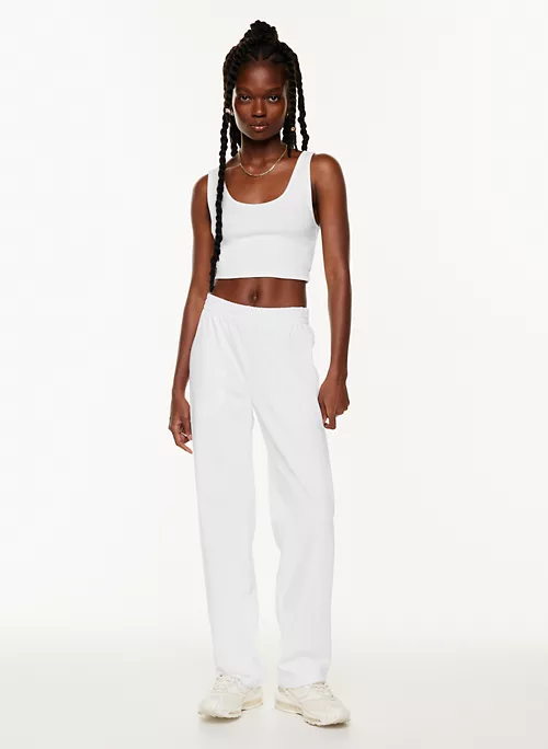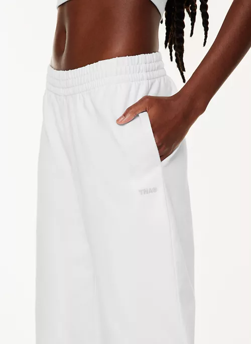 Worth the upgrade. These are mid-rise wide-leg pants with inseam pockets, an elastic waist and a drawcord. They’re made with softly structured 100% cotton jersey.