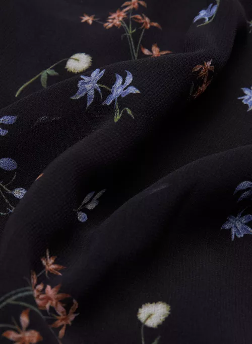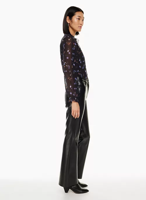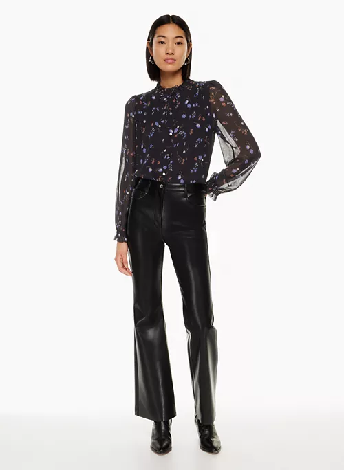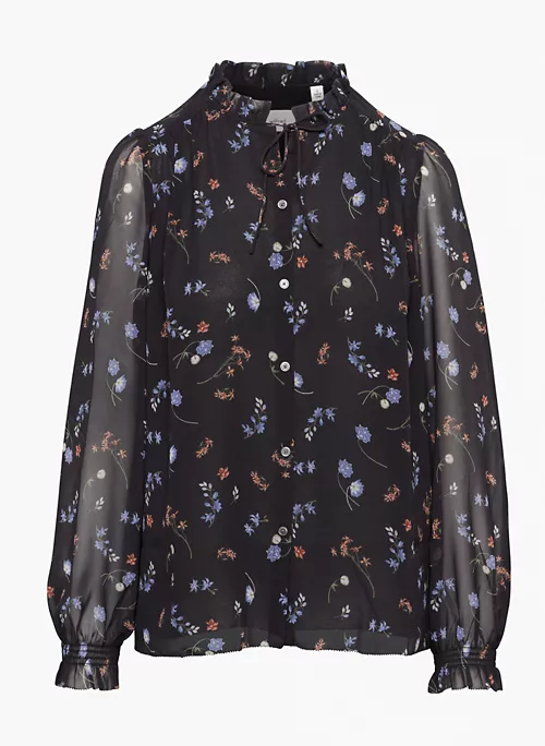 This is a button-up blouse with a ruffled collar, smocked cuffs and rouleau neck ties. Itās made with FĆŖte Chiffon ā lightweight, semi-sheer fabric with an ethereal drape.Ā