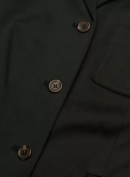 This is a single-breasted blazer with a notch collar, welt hand pockets and shoulder pads. It’s cut from Japanese fabric with a soft structure, comfortable stretch and subtle sheen.