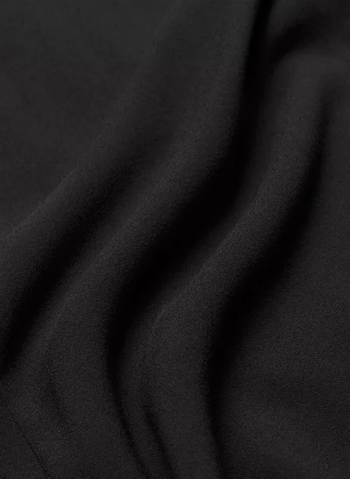 This is a fully lined square-neck midi dress with a thigh slit and adjustable straps. It’s made with drapey, lightweight crepe.