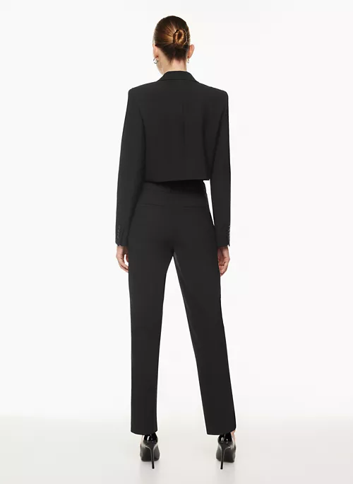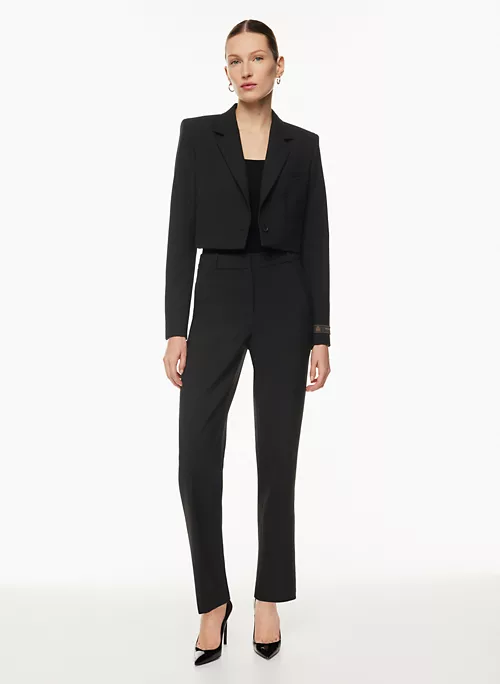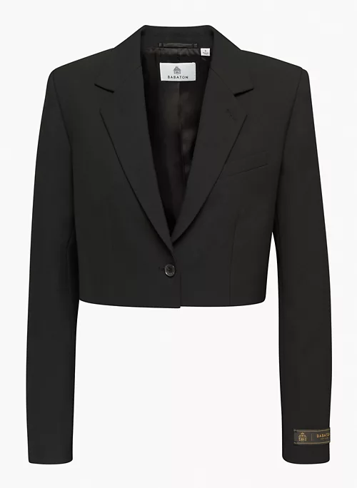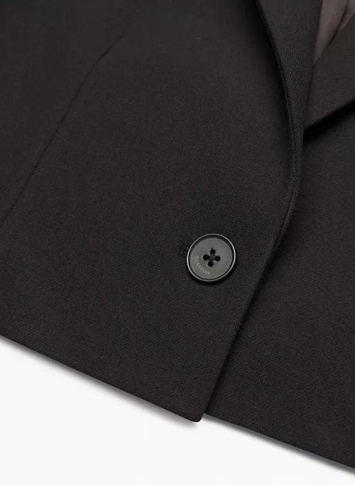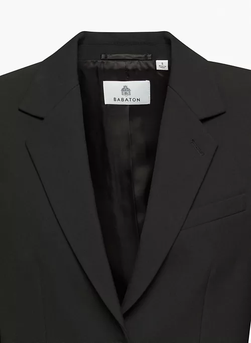 This is a single-breasted blazer with a notch lapel and darted waist. It’s cut from (Re)ssential ā softly structured stretch fabric that holds its form while you move easy. Itās sourced from a premier Portuguese mill and made with recycled materials and LENZING⢠ECOVERO⢠Viscose ā responsibly sourced, wood-based fibres produced through a process that reduces impact on forests, biodiversity and water supply.Ā