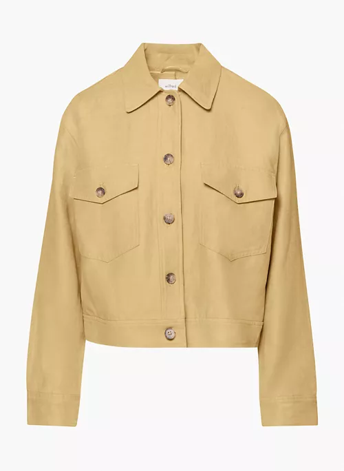 This is a shirt jacket with patch pockets, dropped shoulders and a boxy fit. It’s cut from soft, drapey fabric made with linen and TENCEL⢠Lyocell ā responsibly sourced wood-based fibres produced through a closed-loop system that reduces environmental impact.