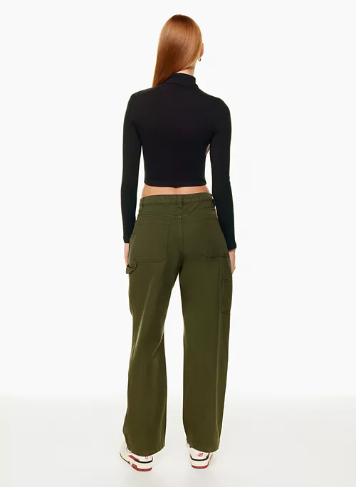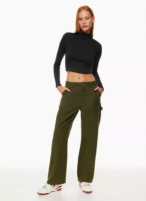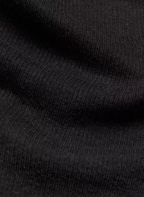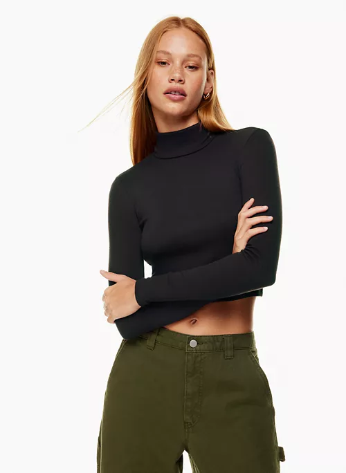 This is a longsleeve with a fold-over turtle neck. It’s made with soft, stretchy cotton rib that hugs the body and retains its shape over time.