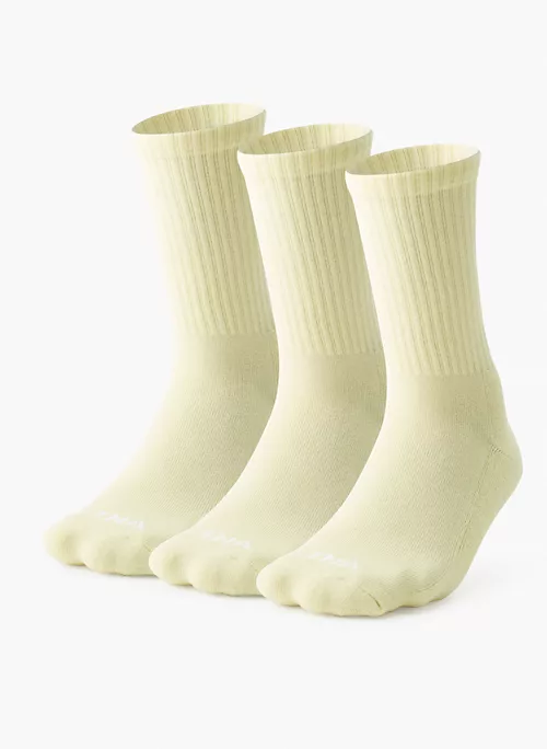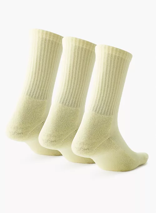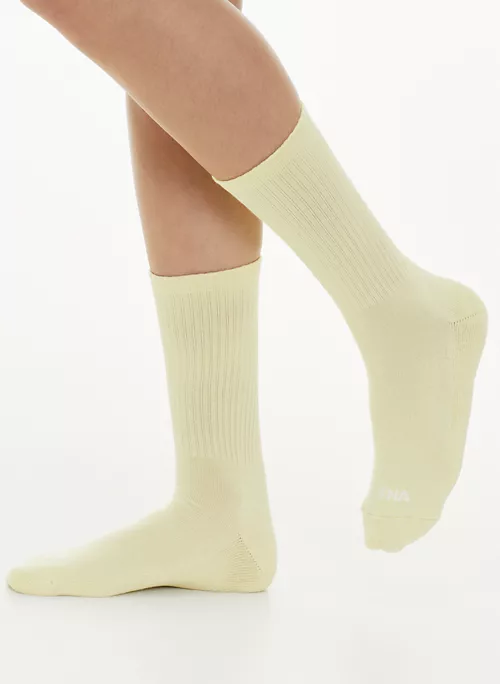 These are ribbed crew socks with terry-knit soles for added cushioning. Theyāre made from a super soft, cozy combed-cotton blend.Ā