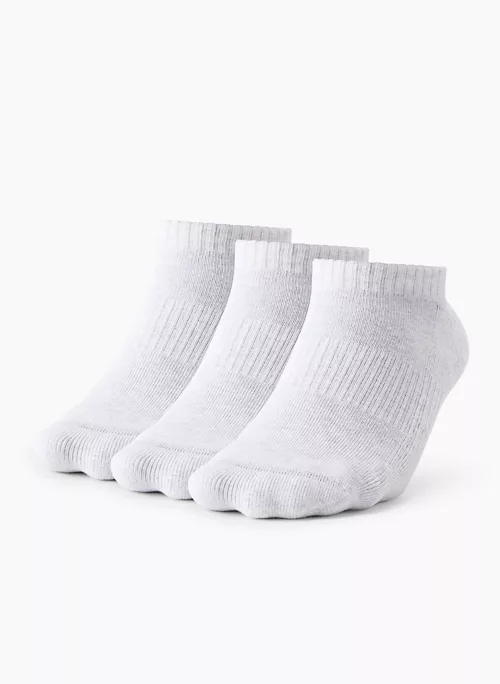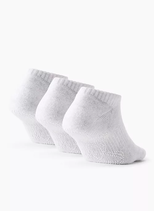 These are no-show socks with seamless toe construction, non-slip grips and a compressive-feel ribbed band for arch support. They’re crafted with soft combed-cotton yarn that has the perfect amount of stretch.