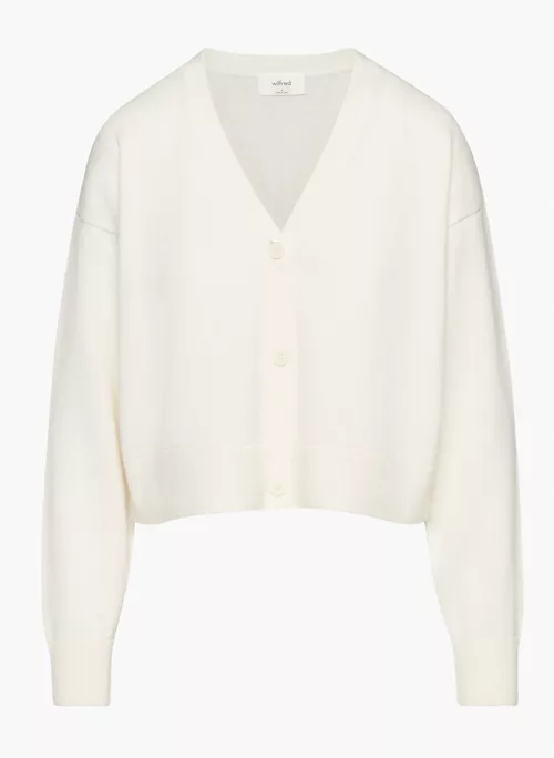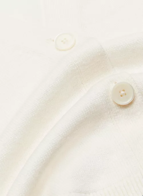 This is a fully fashioned V-neck cardigan. It’s knit with Breeze Merino ā extra fine merino wool and cotton yarn with lightweight, all-season warmth and a soft feel. This wool is certified to the Responsible Wool Standard. It’s constructed using a Jersey stitch for a soft drape and a smooth, flat feel.Ā