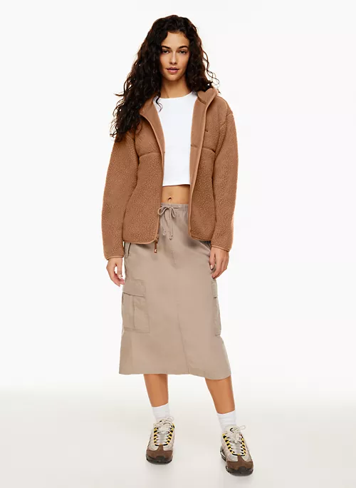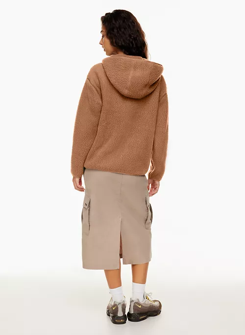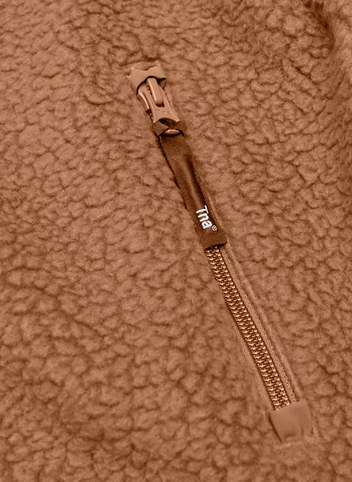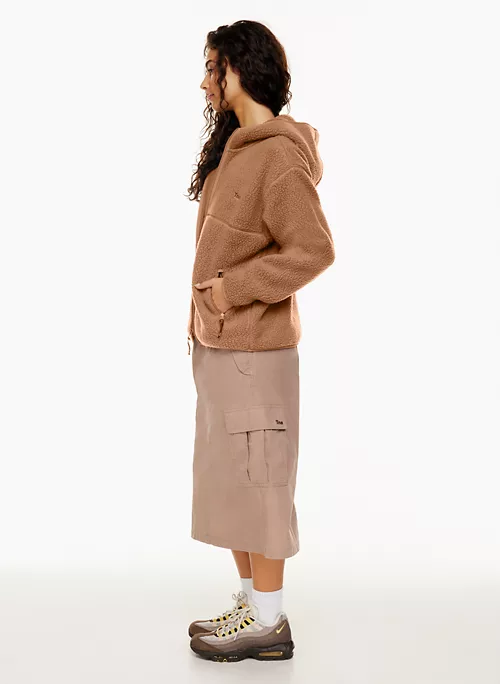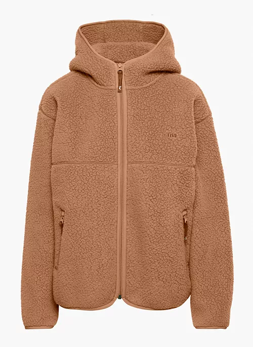 This is a zip-up hoodie with hand pockets. It’s made with Bigfoot Polar — lightweight, 100% recycled fleece made with Polartec© Thermal Pro® that’s breathable and warm with a shaggy sherpa texture.