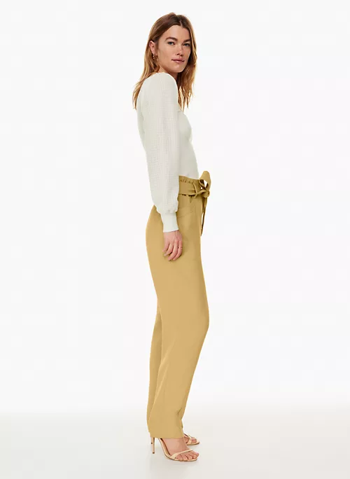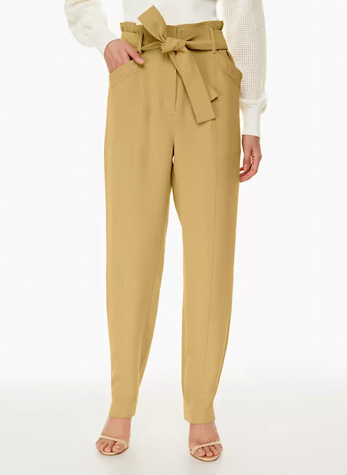 These are high-waisted pants with a tapered leg and removable belt. They’re made from Crepette — Wilfred’s iconic crepe fabric famous for its subtle texture and breezy, effortless drape. It’s sourced from a premier Japanese mill.