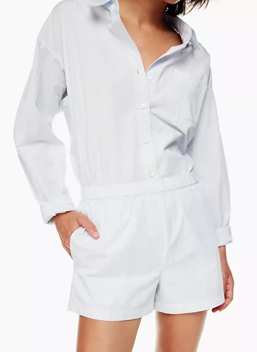 These are pyjama-inspired, high-waisted shorts with an elastic waist, faux fly and inseam pockets. Theyāre made from lightweight, airy cotton poplin.Ā