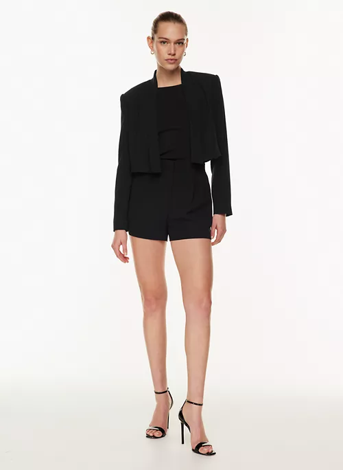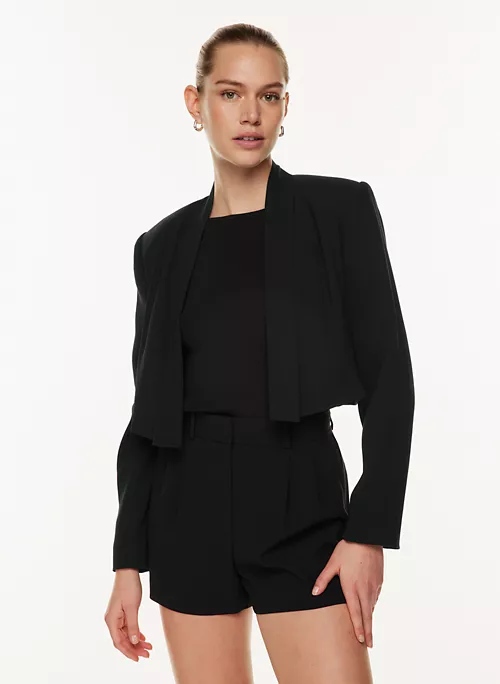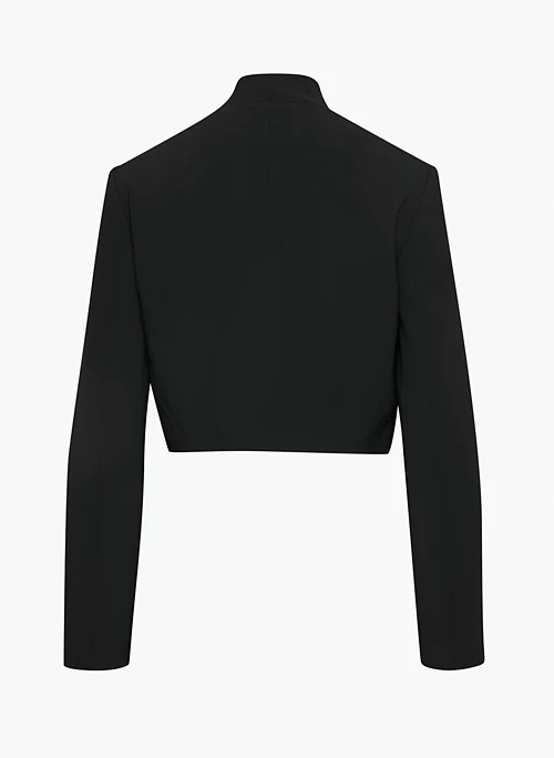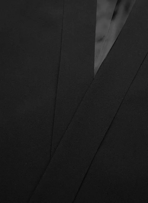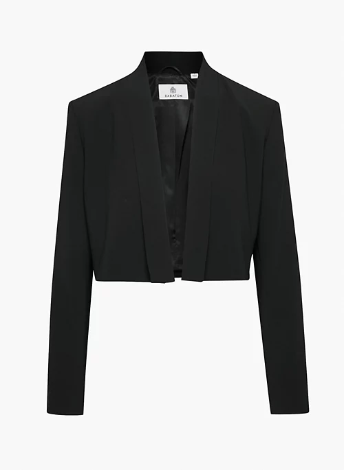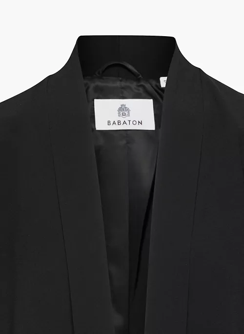 This is an open-front blazer with shoulder pads. Itās tailored with Mirror Crepe ā Babatonās essential crepe fabric with a soft drape and silky satin back. Itās sourced from an innovative Japanese mill and made with wood-based fibres from responsibly managed forests with a focus on protecting ecosystems and providing social benefits for local communities.