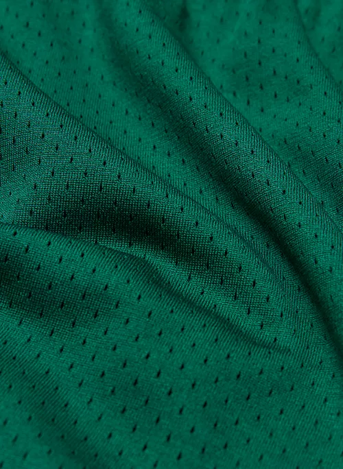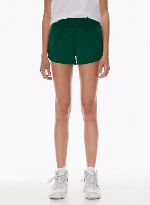 Xoxo. These are mid-rise track shorts with an elastic waist and a dolphin hem. They’re made with soft, airy mesh designed for sports.