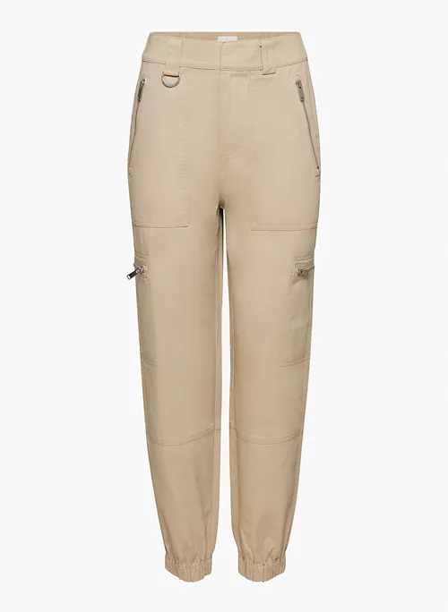 These are high-waisted utility joggers with cargo pockets. They’re made with structured, workwear-inspired cotton twill.