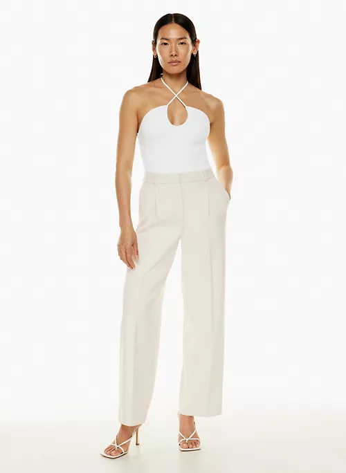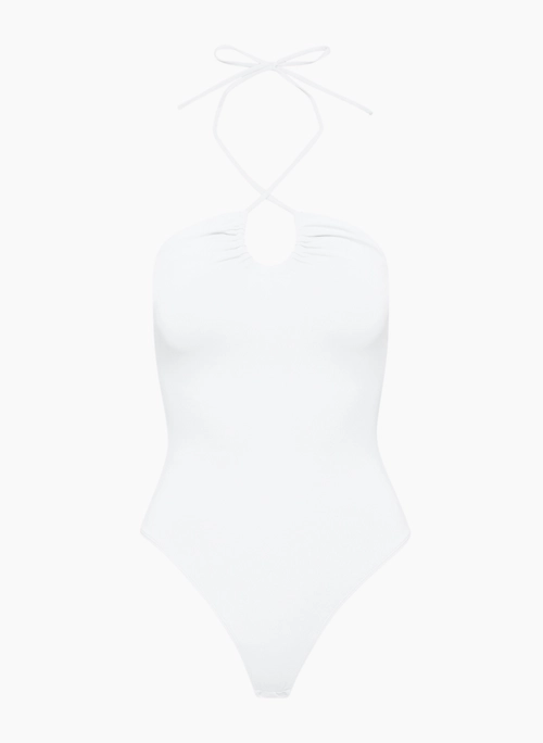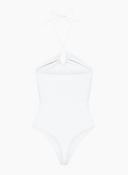 This is a halter bodysuit with double-layer fabric, a thong-cut bottom and criss-cross straps that tie around the neck. It’s made with Babaton’s signature Contour — luxe, ultra-flattering fabric coveted for its smoothing effect and second-skin feel. Essential for every body.