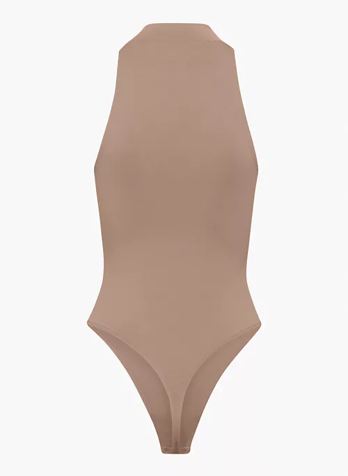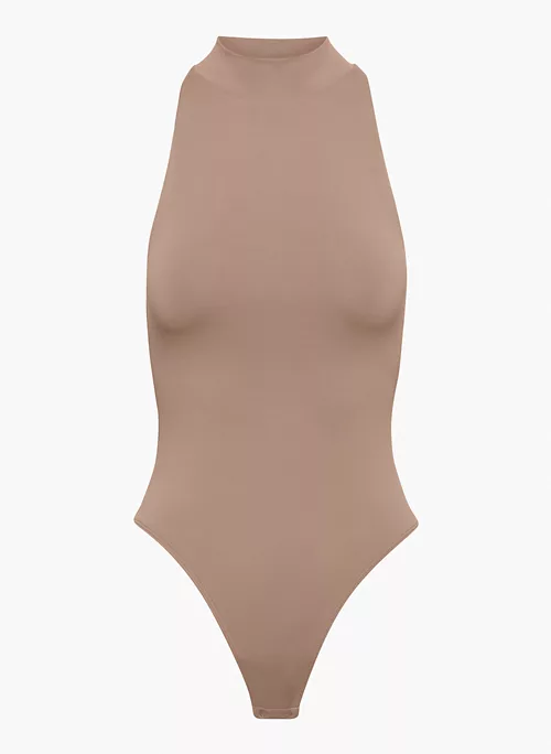You pass. This is a halter mock-neck bodysuit with a thong-cut bottom and double-layer fabric for extra hold. It’s made with Babaton’s signature Contour — luxe, ultra-flattering fabric coveted for its smoothing effect and second-skin feel. Essential for every body.