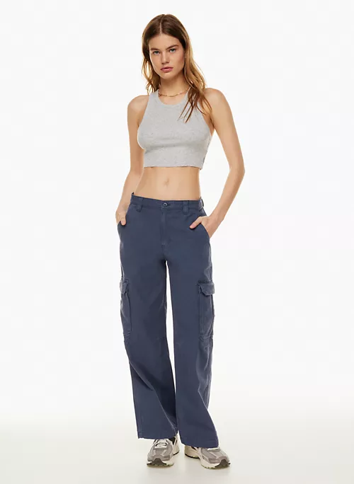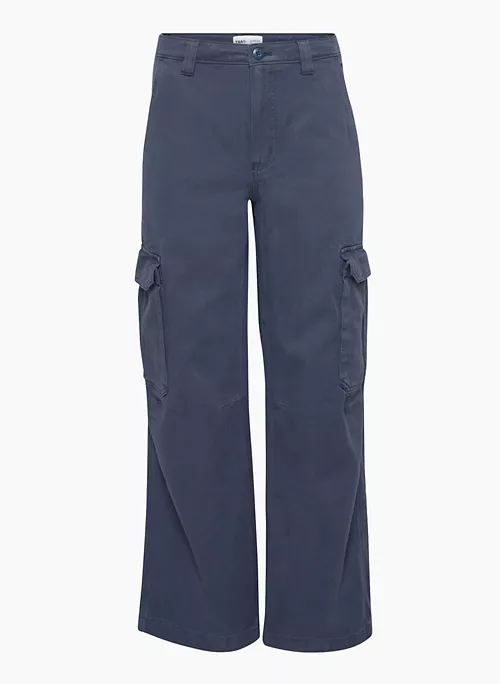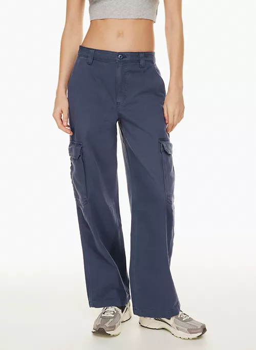 These are mid-rise, slouchy-fit cargo pants with side pockets and back welt pockets. They’re crafted with structured, workwear-inspired twill made from 100% cotton.