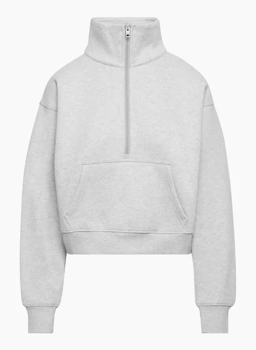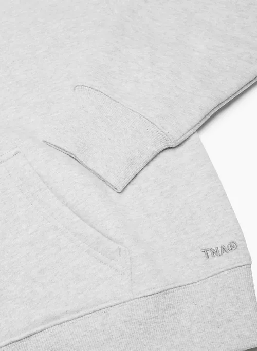 This is a half-zip hoodie with a funnel neckline, dropped shoulders and thumbholes. It’s made with Tna’s Cozy Fleece — premium, midweight fleece famous for its soft-brushed back, sueded face and cloud-nine cozy feel. The world’s best.