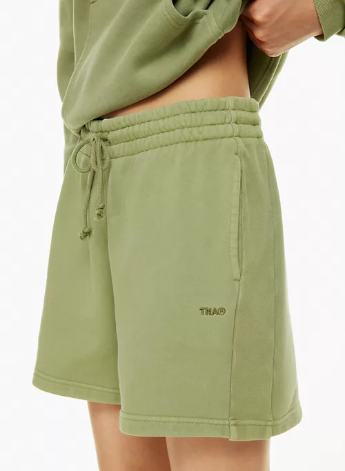 These are mid-rise sweatshorts with an elastic drawcord waist. Theyāre made with Tnaās Cozy Fleece ā premium, midweight fleece famous for its soft-brushed back, sueded face and cloud-nine cozy feel. The worldās best.