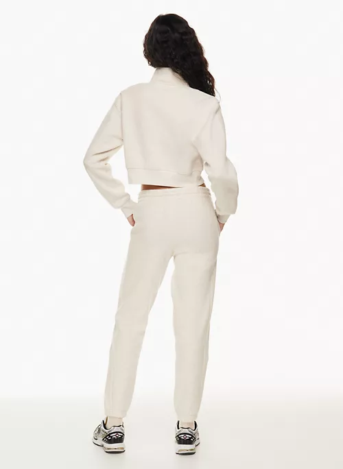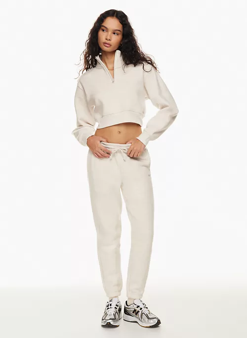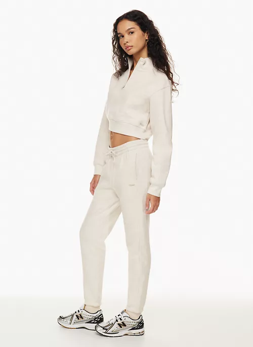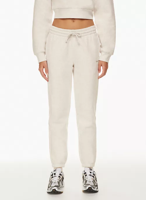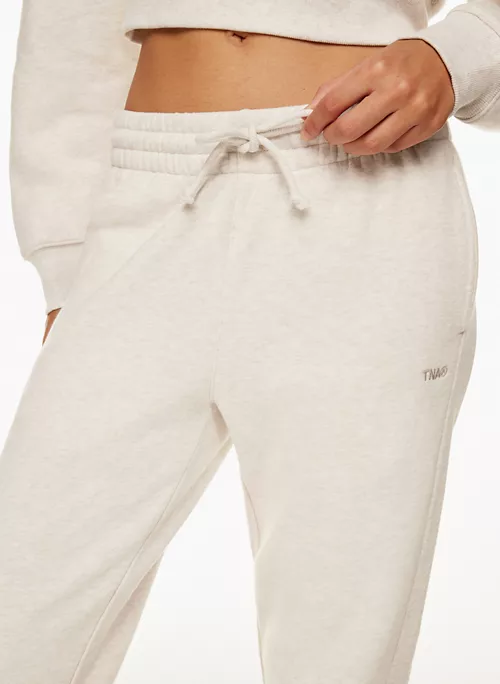 These are mid-rise boyfriend-fit sweatpants with inseam pockets and an elastic waist and cuffs. They’re made with Tna’s Cozy Fleece — premium, midweight fleece famous for its soft-brushed back, sueded face and cloud-nine cozy feel. The world’s best. Their fit has been perfected season after season for the ultimate relaxed look.