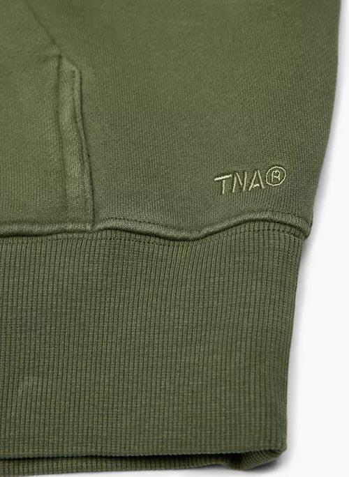 This is an oversized pullover hoodie with dropped shoulders, a kanga pocket and ribbed trim. Itās made with Tnaās Cozy Fleece ā premium, midweight fleece famous for its soft-brushed back, sueded face and cloud-nine cozy feel. The world’s best.