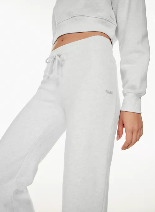 These are low-rise wide-leg sweatpants with a wide waistband and round drawcord. They’re made with Tnaās Cozy Fleece ā premium, midweight fleece famous for its soft-brushed back, sueded face and cloud-nine cozy feel. The world’s best.