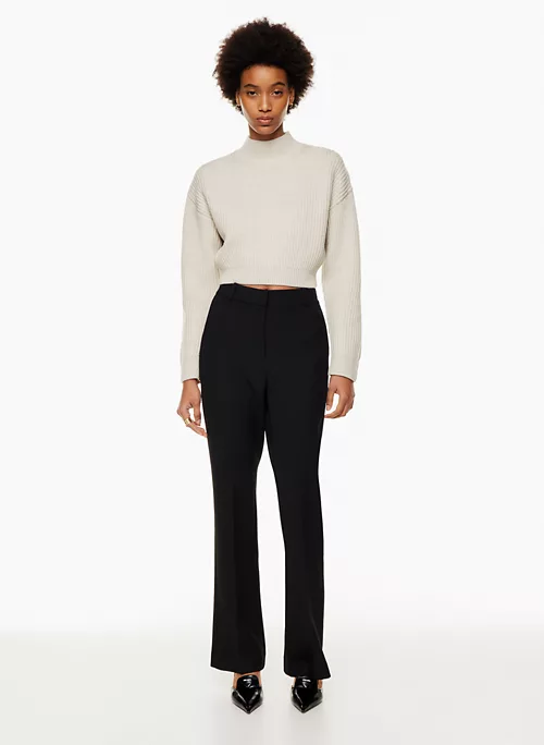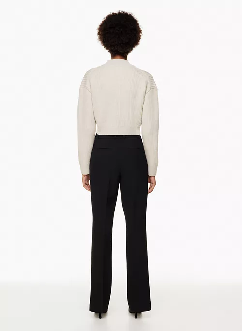 This is a turtleneck sweater with fully fashioned construction. It’s knit with Embrace MerinoTM — extra-fine 100% merino wool yarn coveted for its natural warmth and super soft feel. We source ours from a premium Italian mill. This version is constructed using a Full Cardigan stitch with distinct vertical ribs for a three-dimensional look and feel.