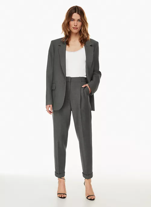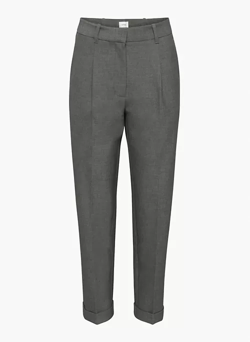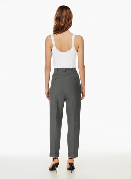 These are high-rise pants with cuffed hems and front knife pleats. They’re made from (Re)ssential ā softly structured stretch fabric that holds its form while you move easy. Itās sourced from a premier Portuguese mill and made with recycled materials and LENZING⢠ECOVERO⢠Viscose ā responsibly sourced, wood-based fibres produced through a process that reduces impact on forests, biodiversity and water supply.