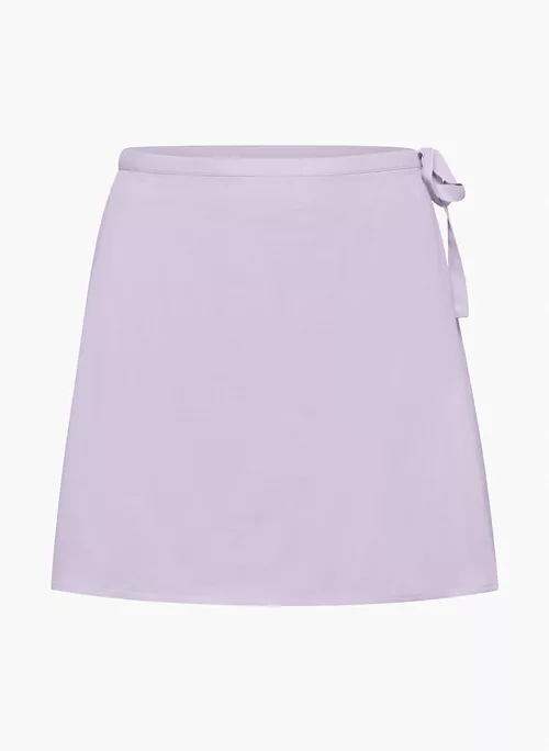 This is a high-waisted mini skirt with a wrap front. Itās made with lightweight, drapey crepe fabric. Ā Ā