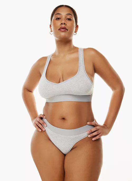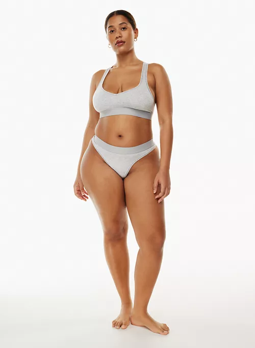 This is a low-rise micro thong with a branded elastic waist and a 100% cotton gusset. It’s made with Tna’s Bare Cotton — ultra-soft, high-stretch fabric made with lightweight SUPIMA® Cotton. This style offers minimum coverage.