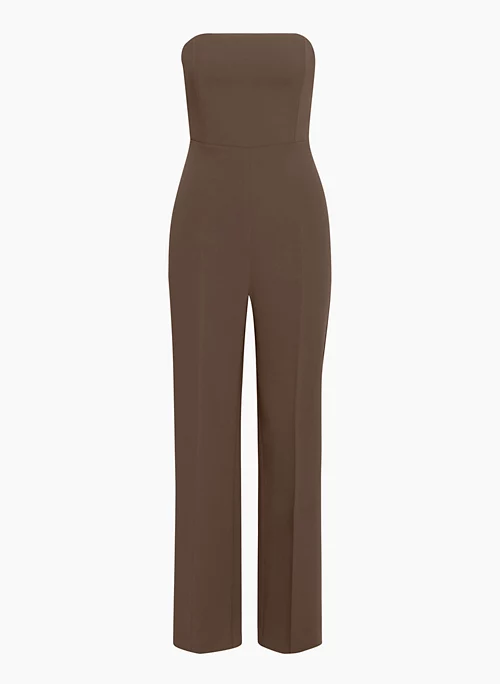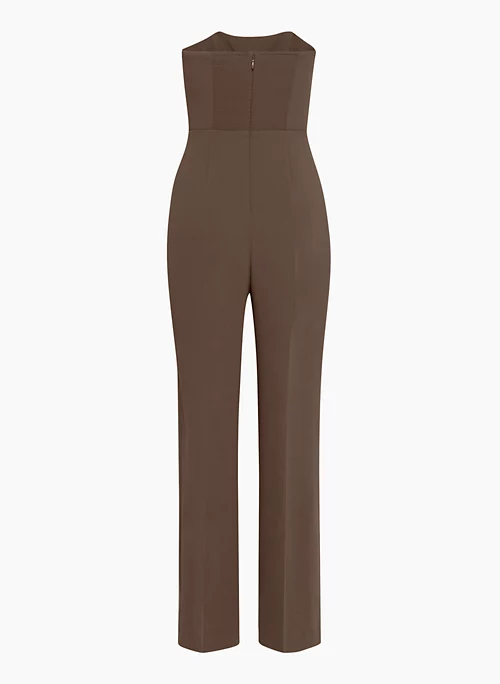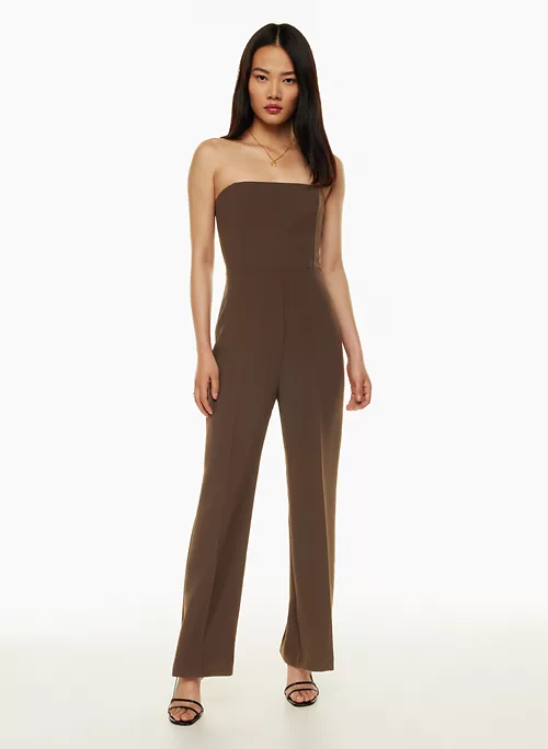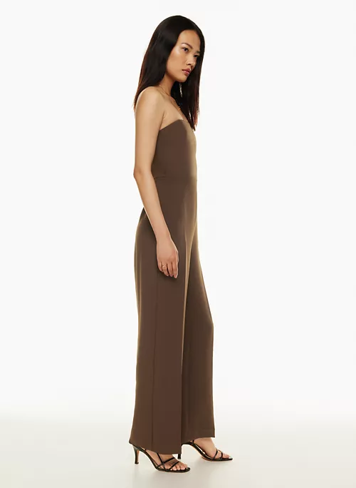And on. This is a strapless jumpsuit with a smocked back panel and princess seams for shaping. Itās made with Crepette⢠ā Wilfredās iconic crepe fabric famous for its subtle texture and breezy, effortless drape. Itās sourced from an innovative Japanese mill.