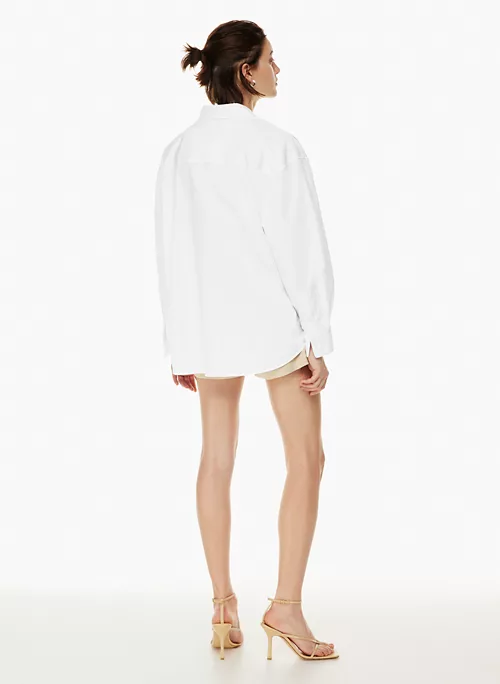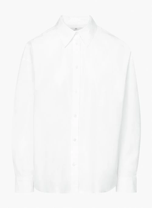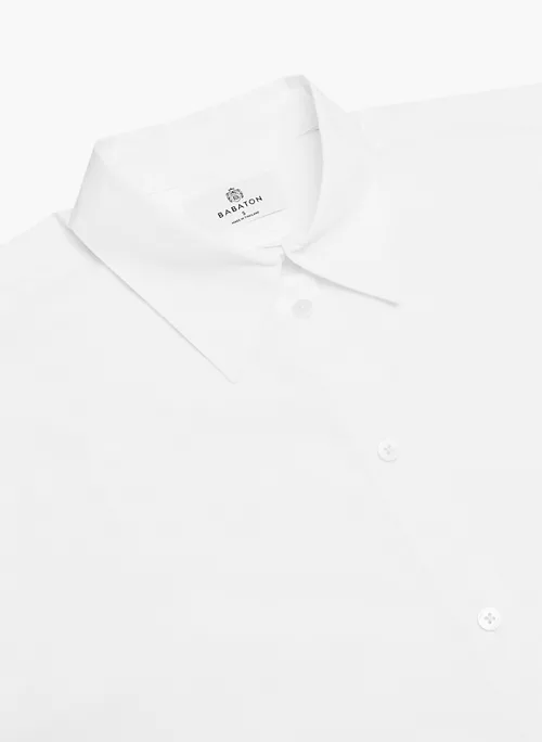 This is a collared button-up shirt with dropped shoulders for a roomier fit. It’s made from airy, refined 100% cotton poplin from Italy.