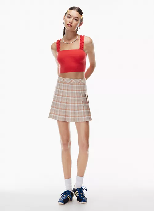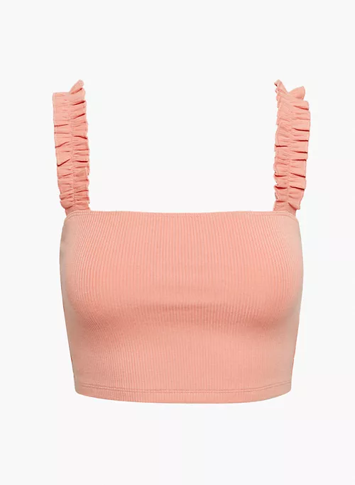 Pow. This is a cropped tank with a square neckline and ruffled straps. It’s cut from stretchy ribbed fabric made with TENCEL⢠Lyocell ā a wood-based fibre produced through a closed-loop production process.