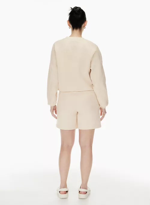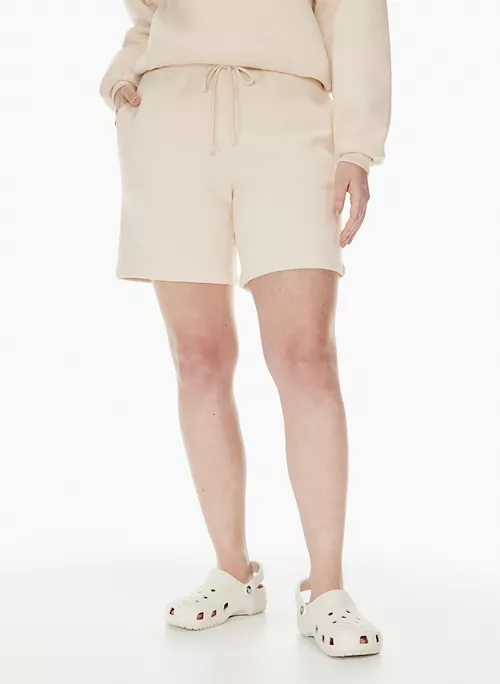 Only soft ones. These are mid-rise shorts with an elastic waist and inseam pockets. They’re made with Free Fleece — cozy, midweight organic cotton fleece with a brushed interior.