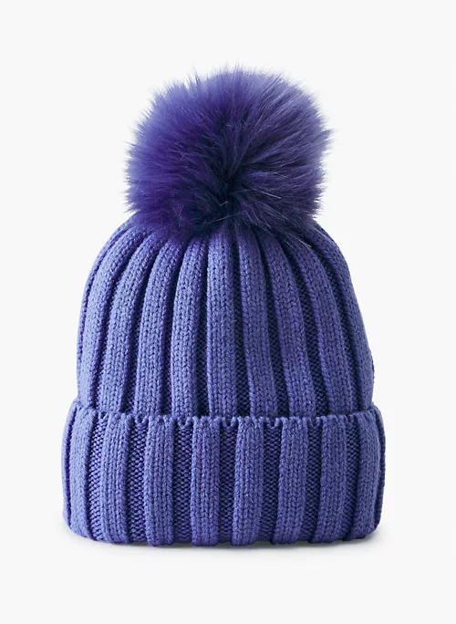This is a cuffed beanie with a faux fur pom. It’s made from ultra-soft yarn.Â