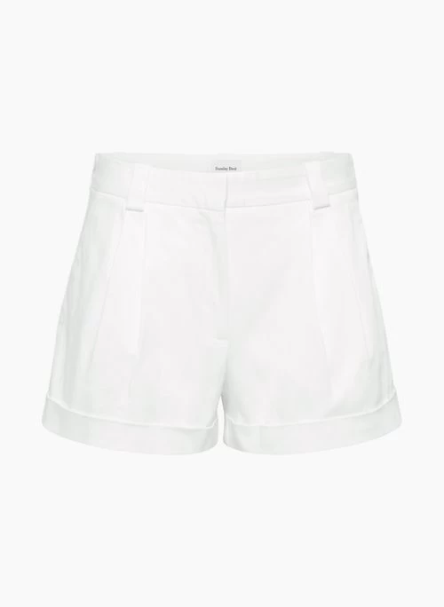 These are pleated shorts with slash hand pockets and button-closure back welt pockets. They’re crafted with softly structured, comfort-stretch Japanese sateen with a subtle sheen.