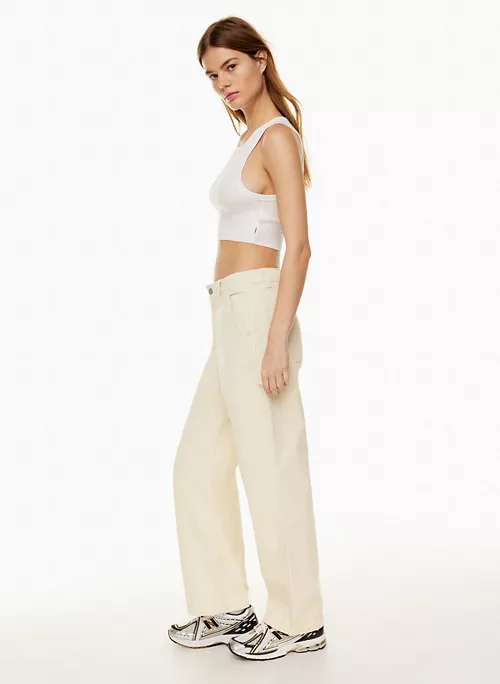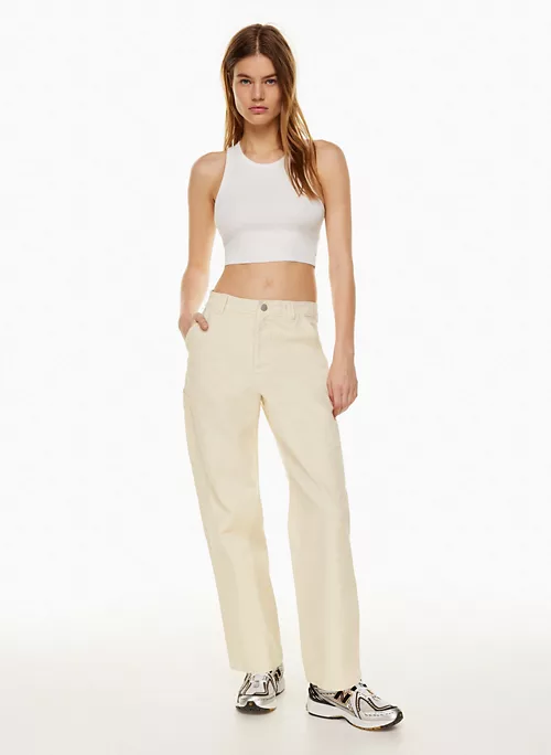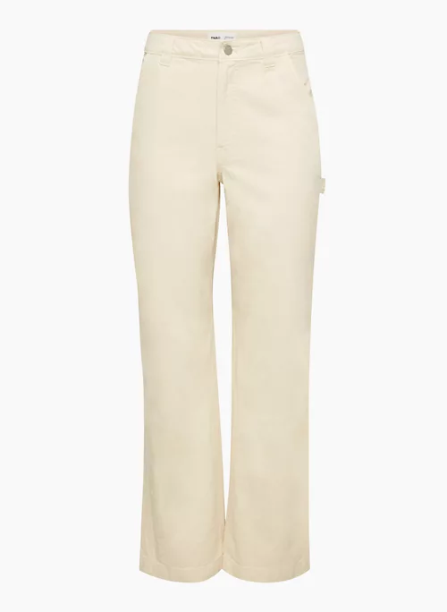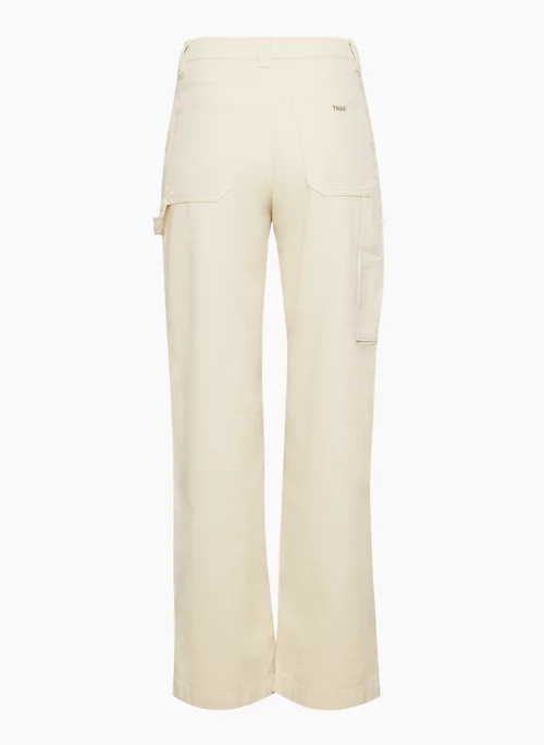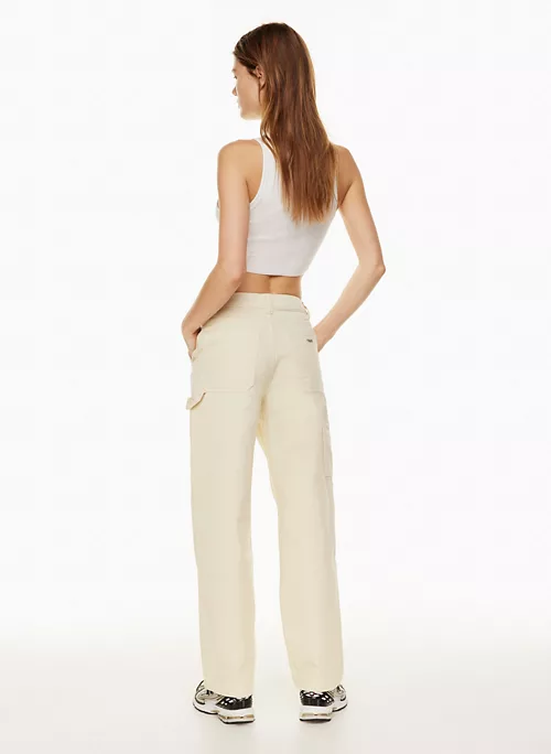 These are high-rise carpenter pants with utility details like side patch pockets and a hammer loop. They’re made with structured, workwear-inspired 100% cotton twill. They’ve been recently updated for an even better fit.