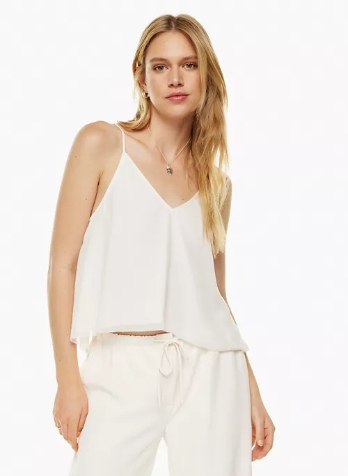 This is a lined cami with adjustable straps and a handkerchief hem. Itās cut from FĆŖte Chiffon⢠ā lightweight, semi-sheer fabric with an ethereal drape. This version is made from 100% recycled materials.