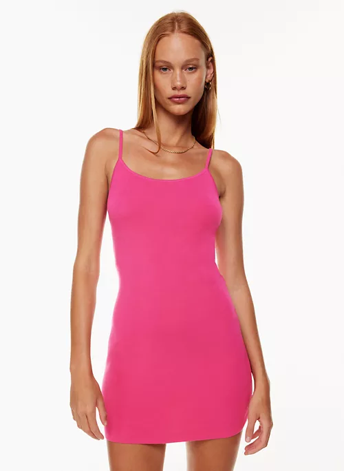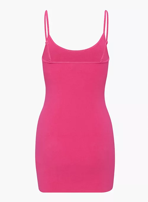 This is a cami mini dress with adjustable straps and fully fashioned construction. It’s made with Wonder Yarn ā the lightweight yarn that lives up to its name. This peachy-soft yarn offers the all-season warmth of wool, without the wool. Itās made with LENZING⢠ECOVERO⢠Viscose ā responsibly sourced wood-based fibres produced through a process that reduces impact on forests, biodiversity and water supply. Itās constructed using a Double Knit stitch for structure and a flat, dense feel.