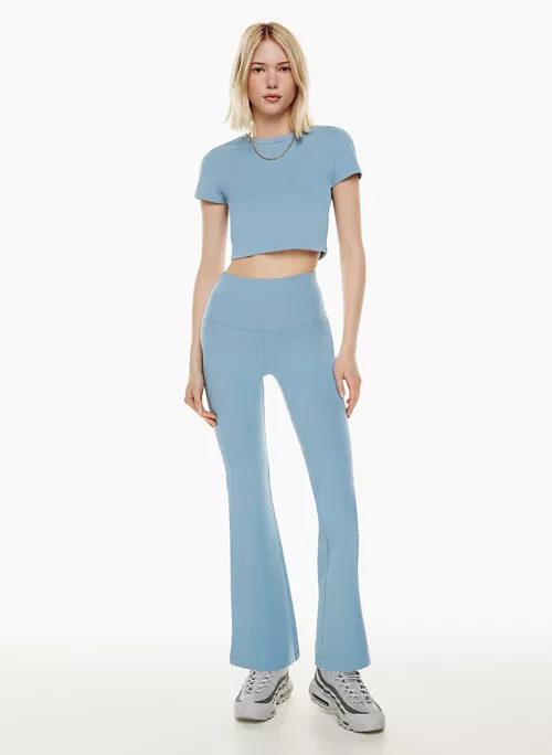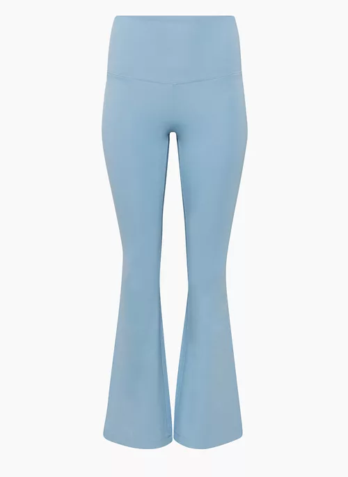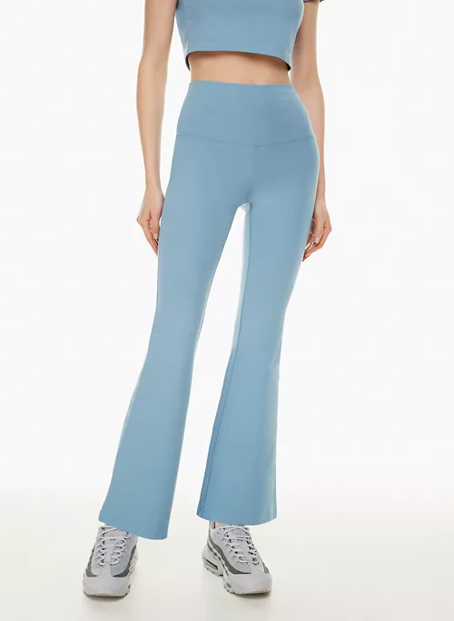 These are high-rise flared leggings with a curved waistband designed to emphasize you know what. They’re made with Hold-It™ — ultra-soft stretch jersey that holds its shape while defining yours. Clutch.
