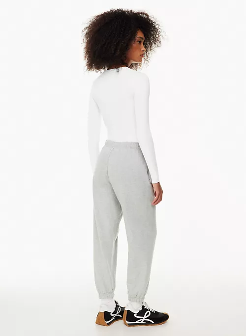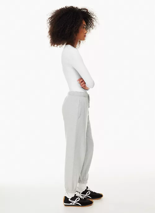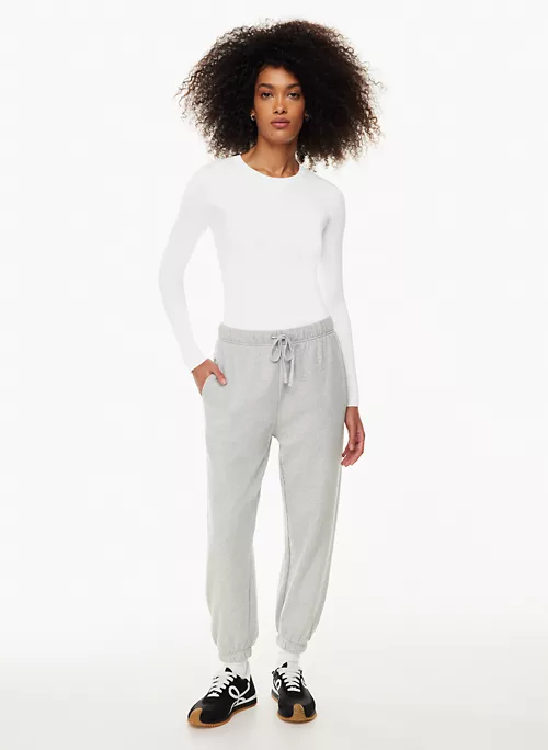 These are mid-rise sweatpants with dart pockets and a drawcord. They’re made from heavyweight French terry with a looped back, soft drape and a breezy feel. This fabric is sourced from Italy.