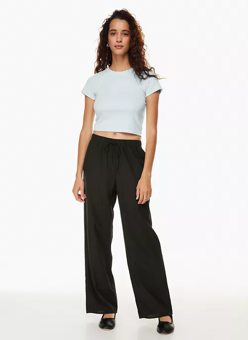 These are high-rise wide-leg pants with an elastic waist and a drawcord. Theyāre cut from an ultra-plush, all-season fabric made with airy linen and LENZING⢠ECOVERO⢠Viscose ā responsibly sourced wood-based fibres produced through a process that reduces impact on forests, biodiversity and water supply.