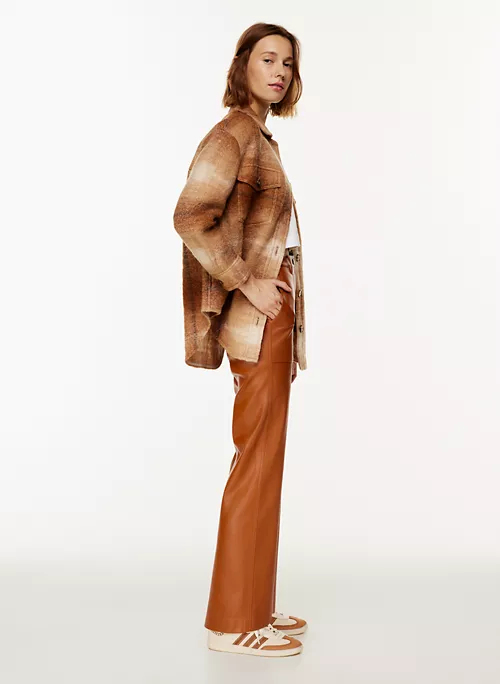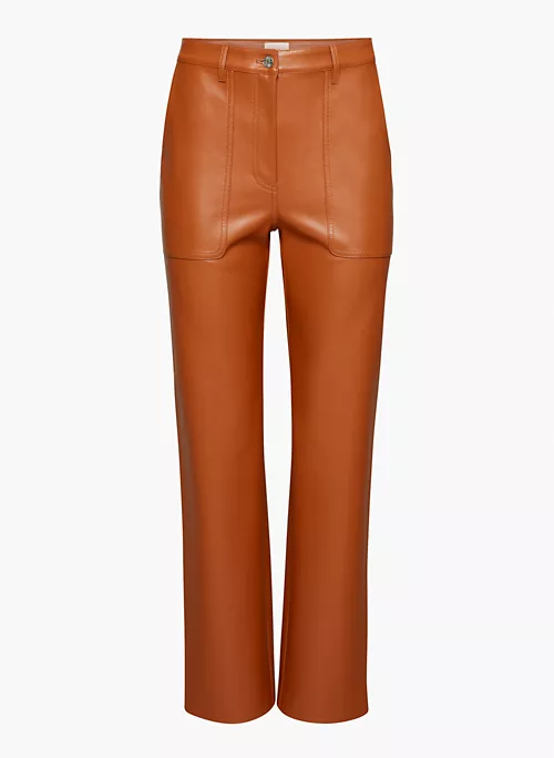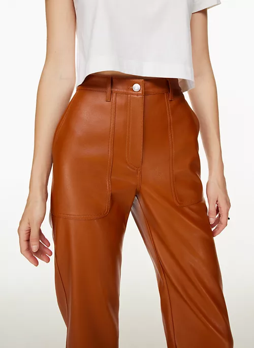 These are high-rise utility pants with patch hand pockets, a darted back waist and topstitch detailing throughout. They’re made with a heavyweight version of our Vegan Leather, crafted to look and feel like the real thing.