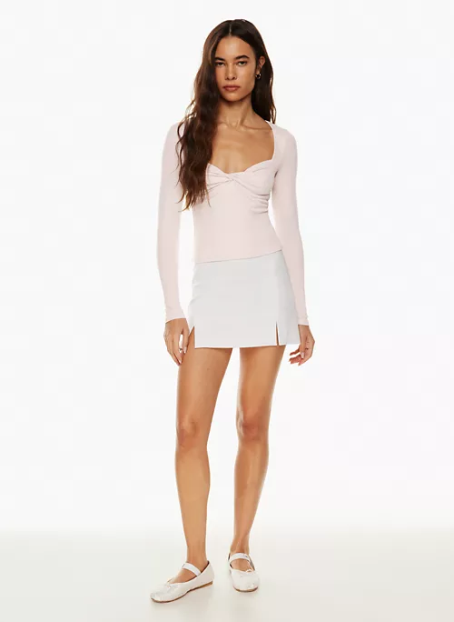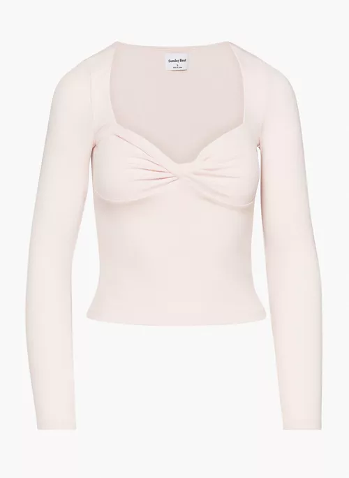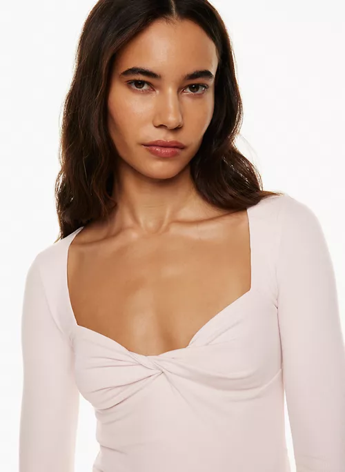 This is sweetheart-neck longsleeve with a twist detail at the bust. Itās made with ReRIBā¢, a soft and drapey ribbed fabric that uses TENCEL⢠Modal ā responsibly sourced wood-based fibres produced through a process that reduces impact on forests, biodiversity and water supply.