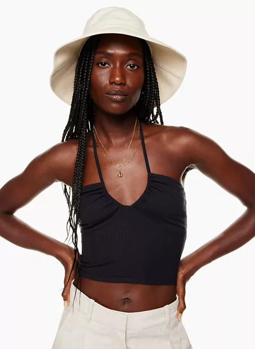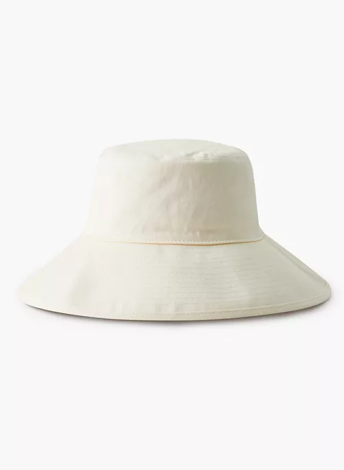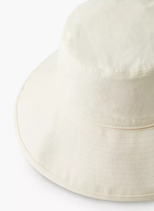 This is a bucket hat with a lined interior crown. It’s made with softly structured, cotton-canvas twill.Â