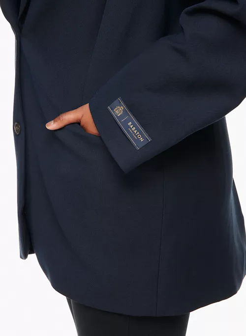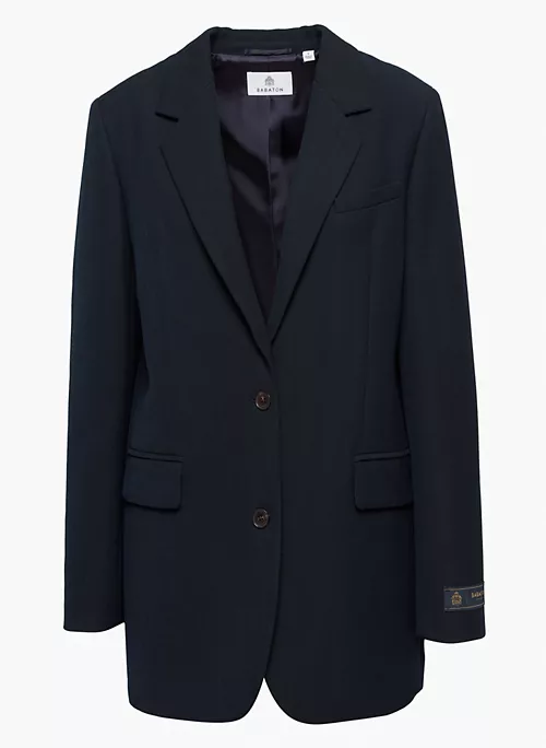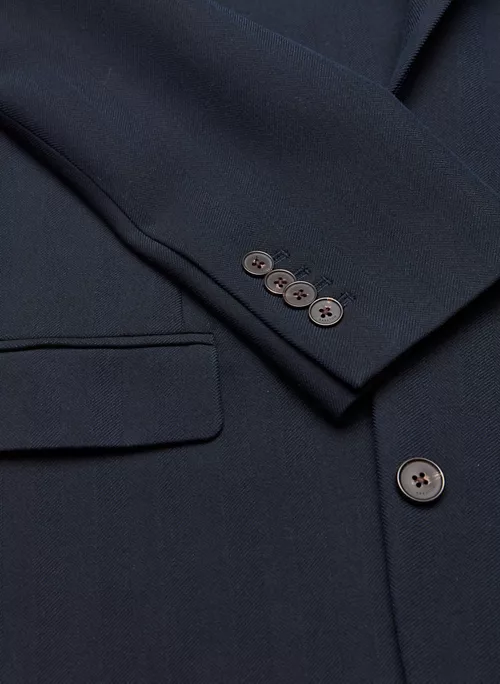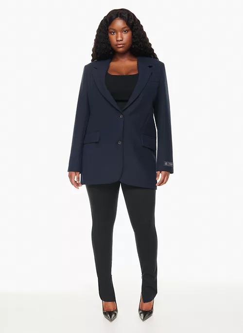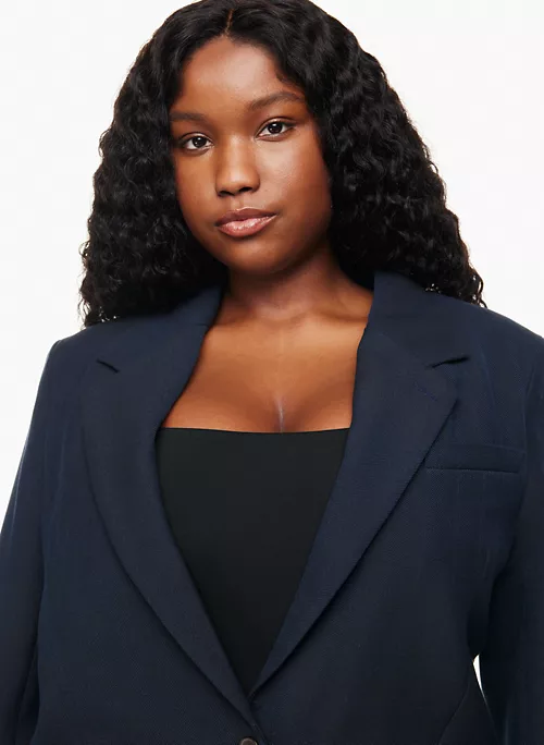 This is a fully lined single-breasted blazer with a notch lapel, interior welt pocket and shoulder pads. It’s cut from (Re)ssential — softly structured stretch fabric that holds its form while you move easy. It’s sourced from a premier Portuguese mill and made with recycled materials and LENZING™ ECOVERO™ Viscose — responsibly sourced, wood-based fibres produced through a process that reduces impact on forests, biodiversity and water supply.