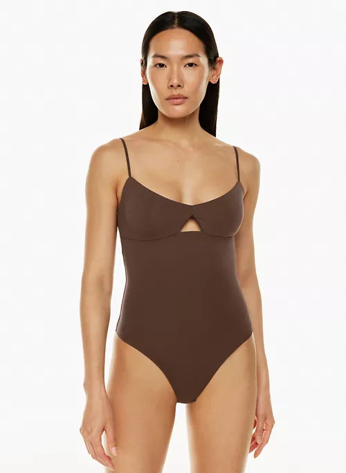 This is bustier-style bodysuit with a cutout detail, sweetheart neckline and adjustable straps. It’s made with Babaton’s signature Contour — luxe, ultra-flattering fabric coveted for its smoothing effect and second-skin feel. Essential for every body.