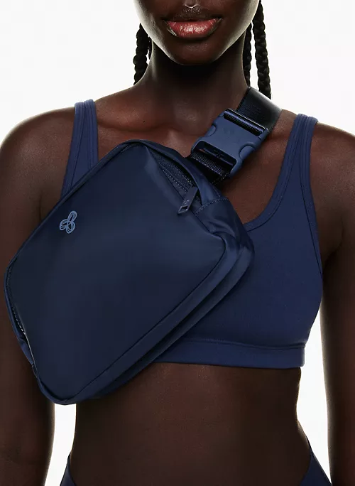 This is a multi-way bag that can be worn around your waist or across your body. It features a hidden zip closure, interior drop pockets and a speed clip with an adjustable webbing strap. It’s made with water-repellent nylon twill.Ā