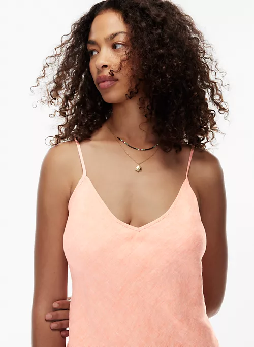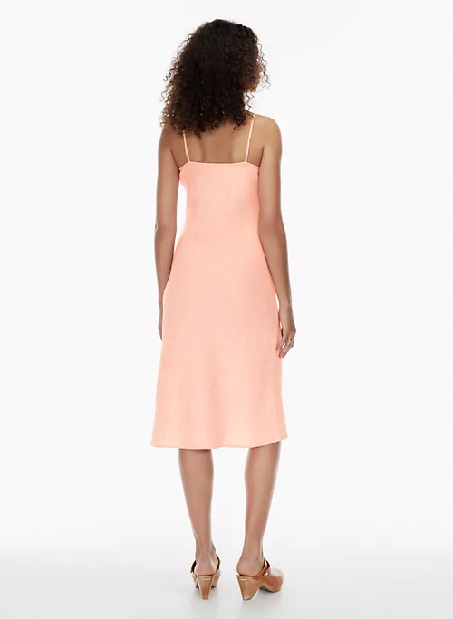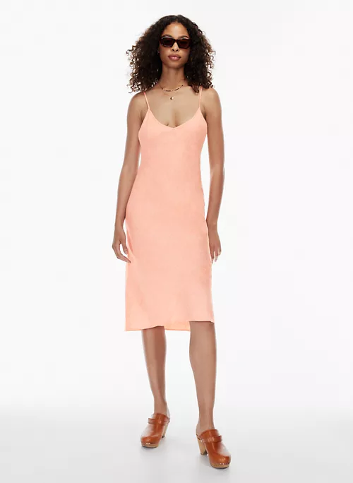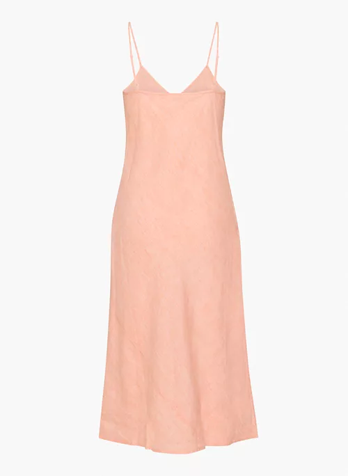 This is a V-neck midi slip dress with a flattering bias-cut body. It’s made from airy 100% organic linen.Ā